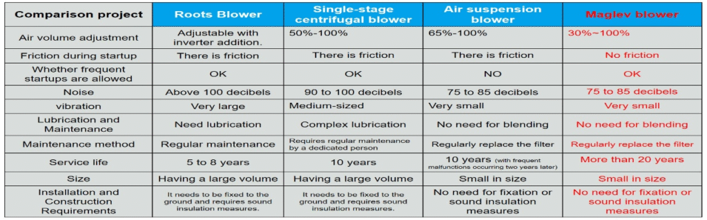 In real-world operation, maglev blowers typically achieve 25%–50% energy savings compared to Roots blowers.